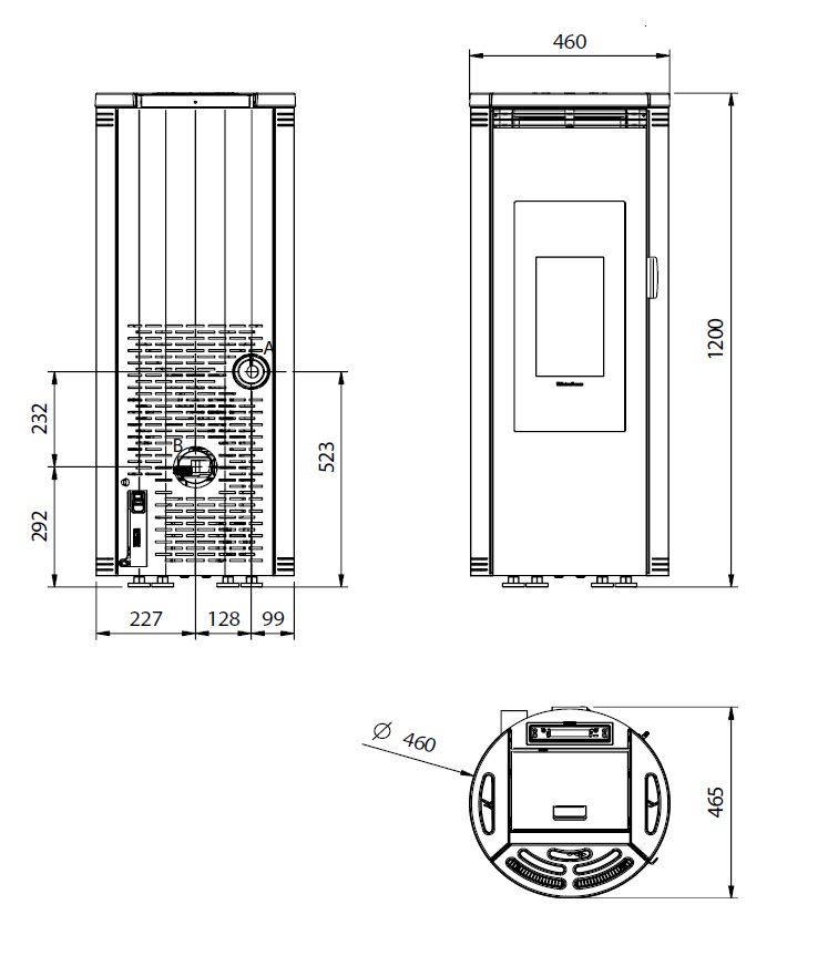 Helppokäyttöinen näyttöpaneeli ilmoittaa nykyisen takan mittaaman huonelämpötilan, ja lämpötilaa voidaan säätää helposti + ja – näppäimillä. Tehoalueella 1-5 voit säätää takan tuottamaa lämpötehoa helposti + ja – näppäimillä. Yksinkertainen ja helppo valikkorakenne. Rullaavat tekstit valikoissa. Takassa vakiona huonetermostaattianturi lyhyellä johdolla (pituus jatkettavissa) Tuotteen vakio-ominaisuksiin kuuluu Glass Cleaning system, jossa ilmavirtaukset on suunniteltu pitämään takan tulipesän lasin mahdollisimman kauan puhtaana. Nopeussäätyvä savukaasumoottori mittaa jatkuvasti nopeutta. Pellettisäiliössä mekaaninen turvatermostaatti, joka pakkokatkaisee pelletinsyötön mikäli säiliön lämpötila nousee liian korkealle. Alipaineanturi tarkkailee hormin vetoa mittaamalla takan läpi virtaavaa ilmaa. Viikko-ohjelmoinnilla mahdollisuus asettaa takka syttymään ja sammumaan haluttuina aikoina. Automaattinen sytytys sytytysvastuksen avulla, paina takka käyntiin napista tai aseta haluttu huonelämpötila, jota takka noudattaa syttymällä ja sammumalla tarpeen mukaan.