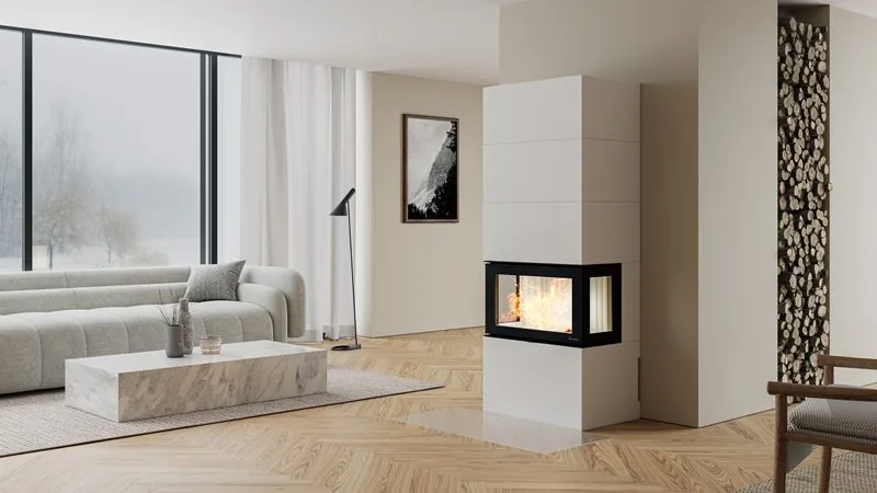 Contura 890 kiertoilmatakka sopii erinomaisesti kulmaan tai suoralle seinälle asennettavaksi.