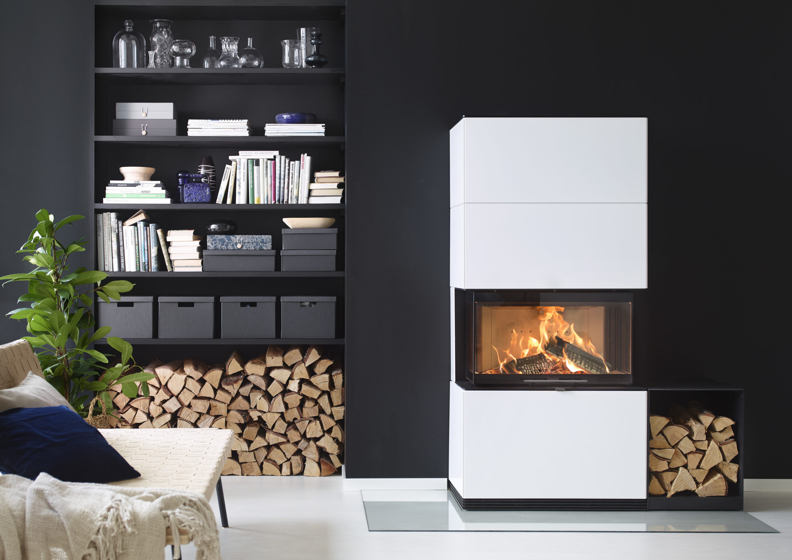 Voit tilata myös kuvissa näkyviä käytännöllisiä halkotiloja takan kylkeen. Kysy lisää