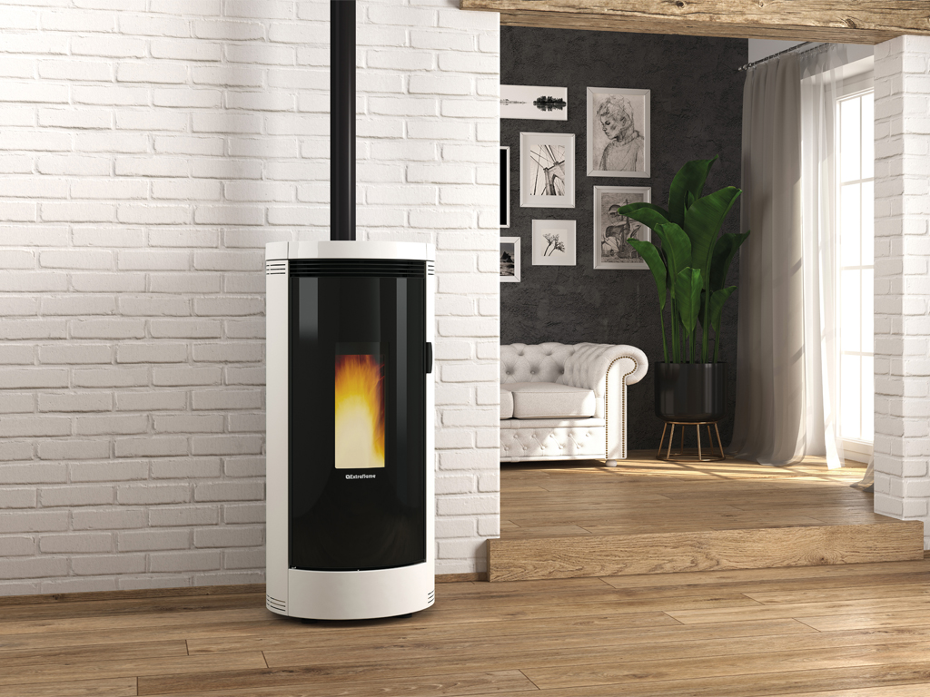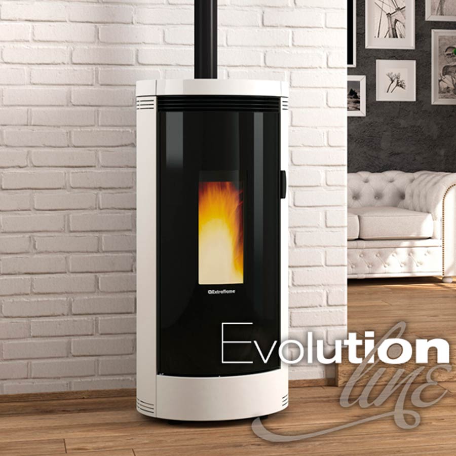 Evolution linjaston tuotemalli. Pellettitakkojen aatelia! Hiljainen Skandinaaviseen makuun ja passiivitaloihin suunniteltu pyöreä pellettitakka, jossa hormiliitos on myös ylöspäin. Tuplalasi tulipesälle on turvallinen myös perheen pienimmille. Valurautaiset tulipesän osat ovat kestävät, ja ne on suunniteltu helpoiksi purkaa puhdistuksen ajaksi. Teräskuoret keraamisella Maiolica kannella. Takkaa voidaan ohjata puhelinsovelluksella erillisellä WIFI lisävarusteella, TOTAL CONTROL sovelluksella. Helppokäyttöinen näyttöpaneeli ilmoittaa nykyisen takan mittaaman huonelämpötilan, ja lämpötilaa voidaan säätää helposti + ja – näppäimillä. Tehoalueella 1-5 voit säätää takan tuottamaa lämpötehoa helposti + ja – näppäimillä. Yksinkertainen ja helppo valikkorakenne. Rullaavat tekstit valikoissa. Takassa vakiona huonetermostaattianturi lyhyellä johdolla (pituus jatkettavissa) Tuotteen vakio-ominaisuksiin kuuluu Glass Cleaning system, jossa ilmavirtaukset on suunniteltu pitämään takan tulipesän lasin mahdollisimman kauan puhtaana. Nopeussäätyvä savukaasumoottori mittaa jatkuvasti nopeutta. Pellettisäiliössä mekaaninen turvatermostaatti, joka pakkokatkaisee pelletinsyötön mikäli säiliön lämpötila nousee liian korkealle. Alipaineanturi tarkkailee hormin vetoa mittaamalla takan läpi virtaavaa ilmaa. Viikko-ohjelmoinnilla mahdollisuus asettaa takka syttymään ja sammumaan haluttuina aikoina. Automaattinen sytytys sytytysvastuksen avulla, paina takka käyntiin napista tai aseta haluttu huonelämpötila, jota takka noudattaa syttymällä ja sammumalla tarpeen mukaan.