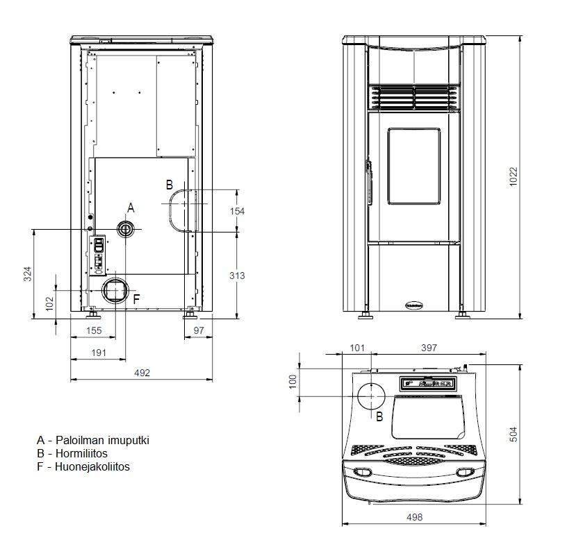 Perus pellettitakka monipuolisilla värivaihtoehdoilla. Maalatut sivukuoret polttomaalattua terästä. Kansi on käsin valmistettua keramiikkaa. Helppokäyttöinen näyttöpaneeli ilmoittaa nykyisen takan mittaaman huonelämpötilan, ja lämpötilaa voidaan säätää helposti + ja – näppäimillä. Tehoalueella 1-5 voit säätää takan tuottamaa lämpötehoa helposti + ja – näppäimillä. Yksinkertainen ja helppo valikkorakenne. Rullaavat tekstit valikoissa. Takassa vakiona huonetermostaattianturi lyhyellä johdolla (pituus jatkettavissa)