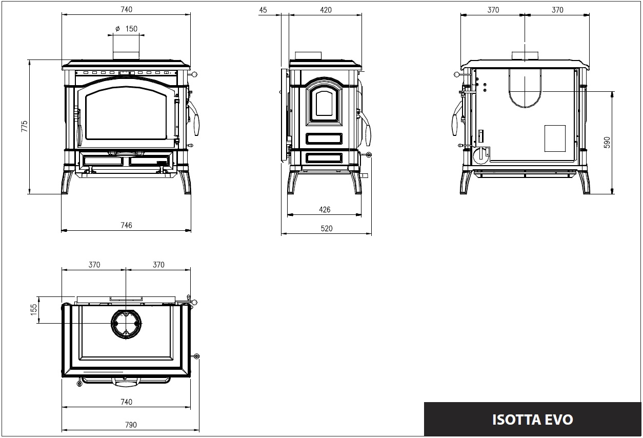 Tämä tuote täyttää 2022 Ekosuunnittelu vaatimukset Isotta Evo on huippulaadukas iso kamiina. Erikoisuutena sivuluukku, josta myös puita voidaan lisätä. 7,7 kW huipputeho tuottaa nopeasti ja erittäin tehokkaasti lämpöä. Huippuunsa hiottu jälkipoltto huolehtii että puusta ei “jää jälkeäkään” erittäin tehokkaalla yli 80 % hyötysuhteellaan. Puu palaa myös kauan hyvien ilmansäätöjensa ansiosta. Hormilähtö voidaan muuttaa päältä sekä takaa ylöspäin tai takaa taakse.
