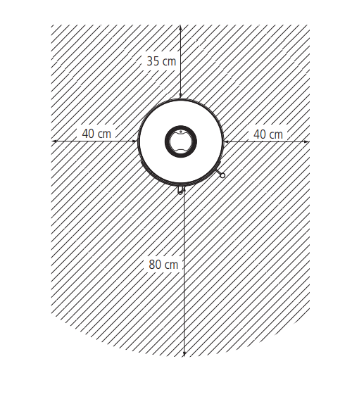 Turvaetäisyydet palaviin materiaaleihin (sivu/taakse/eteen): 400 mm/350 mm/800 mm