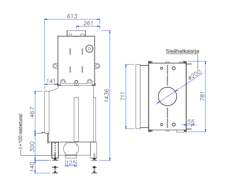 Luukun koko L x K (+S): 760 x 469 (+419) mm