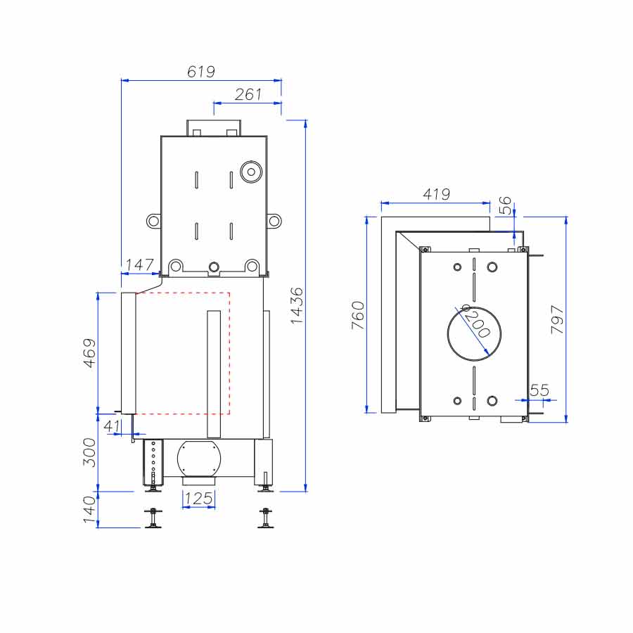 Luukun koko L x K (+S): 760 x 469 (+419) mm