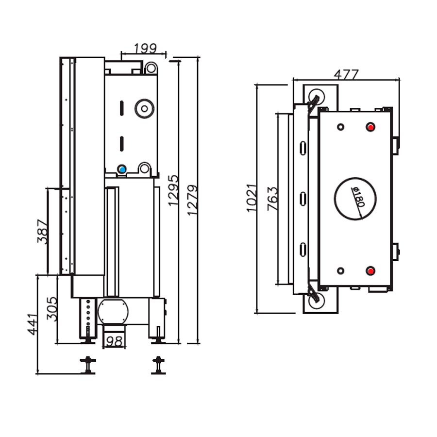 Vakiona säätöjalat, ulkoinen paloilmanottoliitäntäpaikka (vasemmalta, oikealta tai alapuolelta). Luukun käsikahvan puoli valittavissa tilauksen yteydessä!