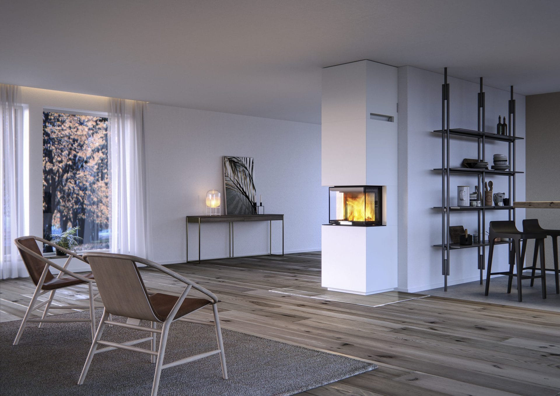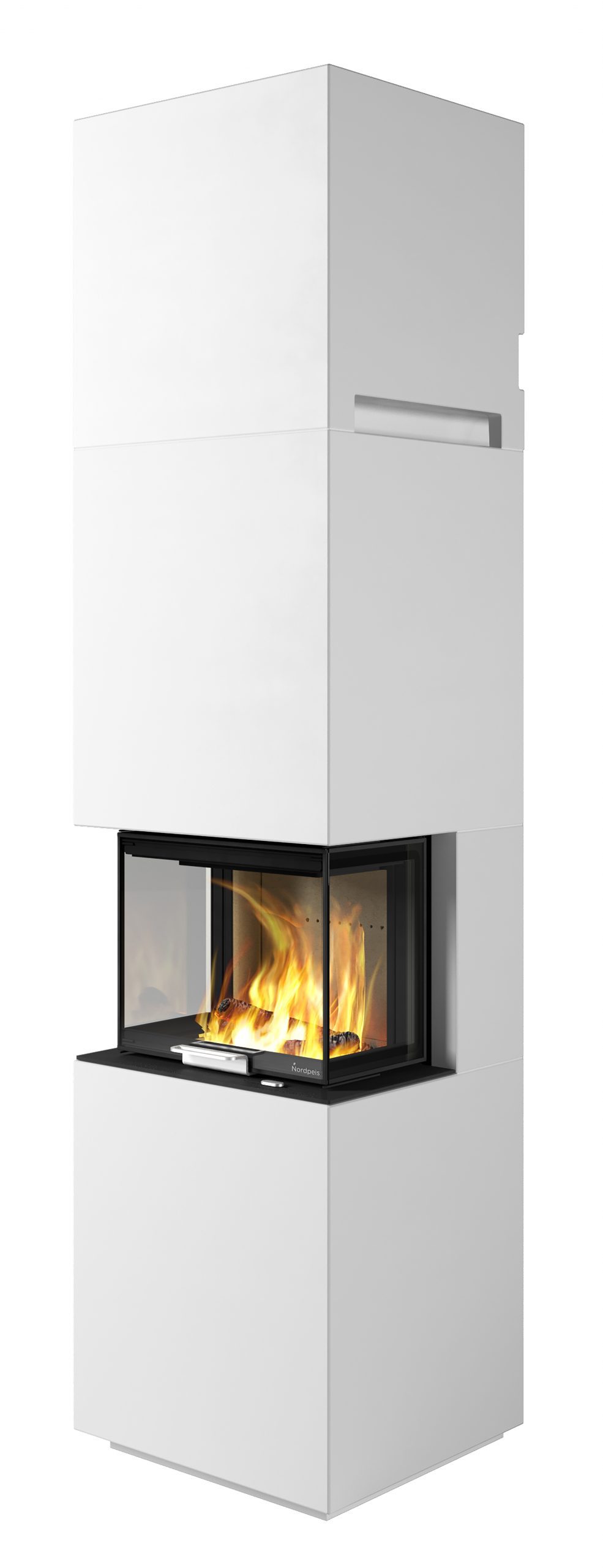Nordpeis Capri on parhaimmillaan suoran seinän asennuksessa, jossa sivuilla ja edessä avautuu upea näkymä takkatulelle.