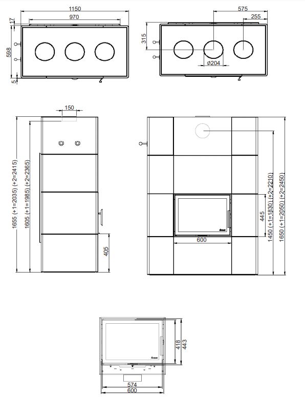 Korkeus (mm) : 1655, 2035 (+1), 2415 (+2)