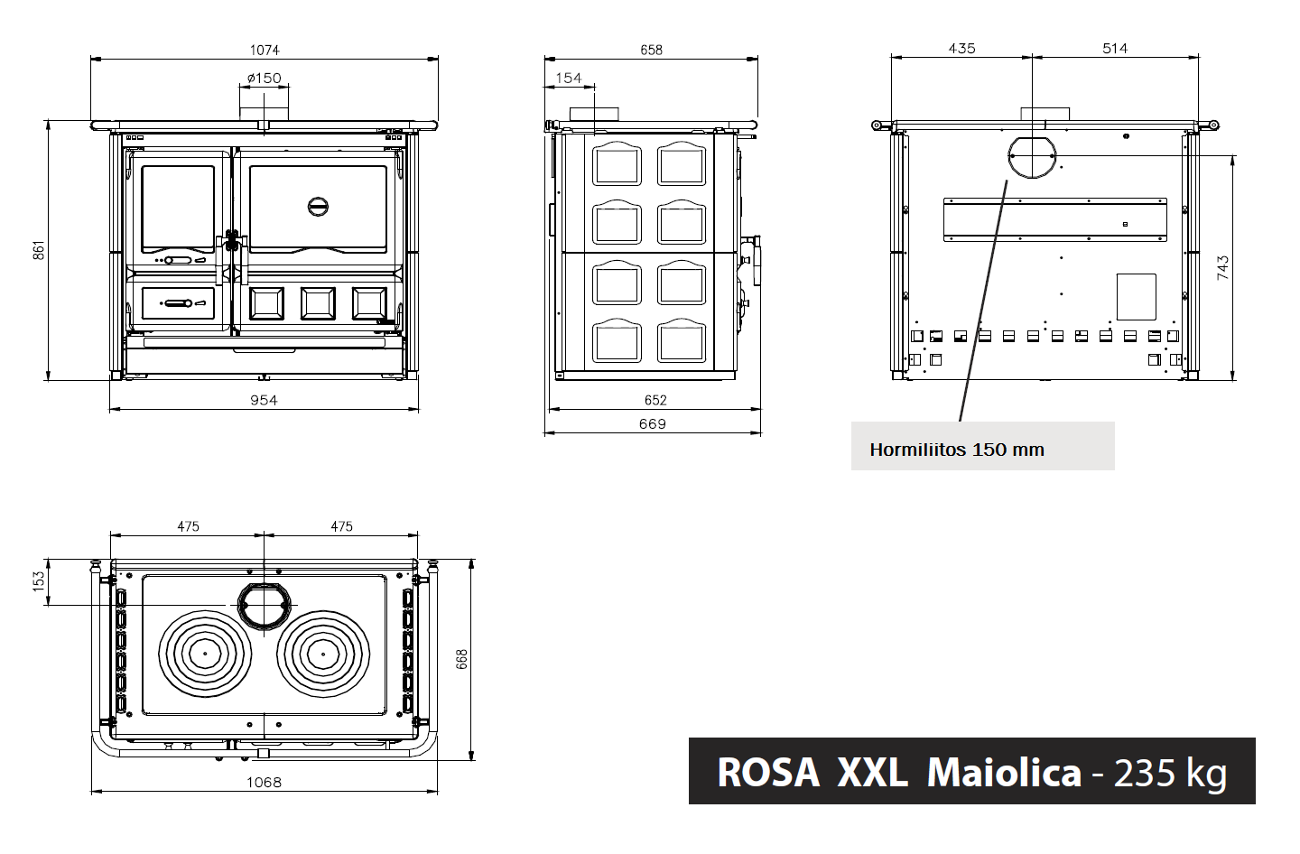 Uunin koko: 436 x 418 x 430 mm