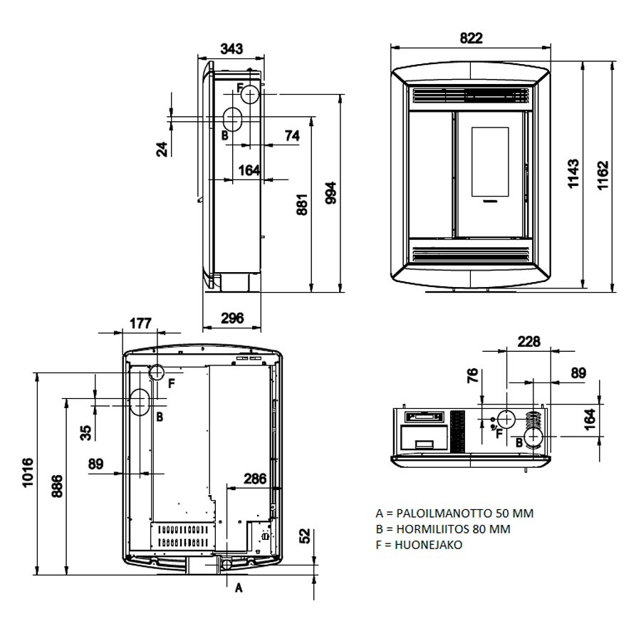 - Irrotettava tulipesän tausta tai kylkielementit (nouhoukseen)