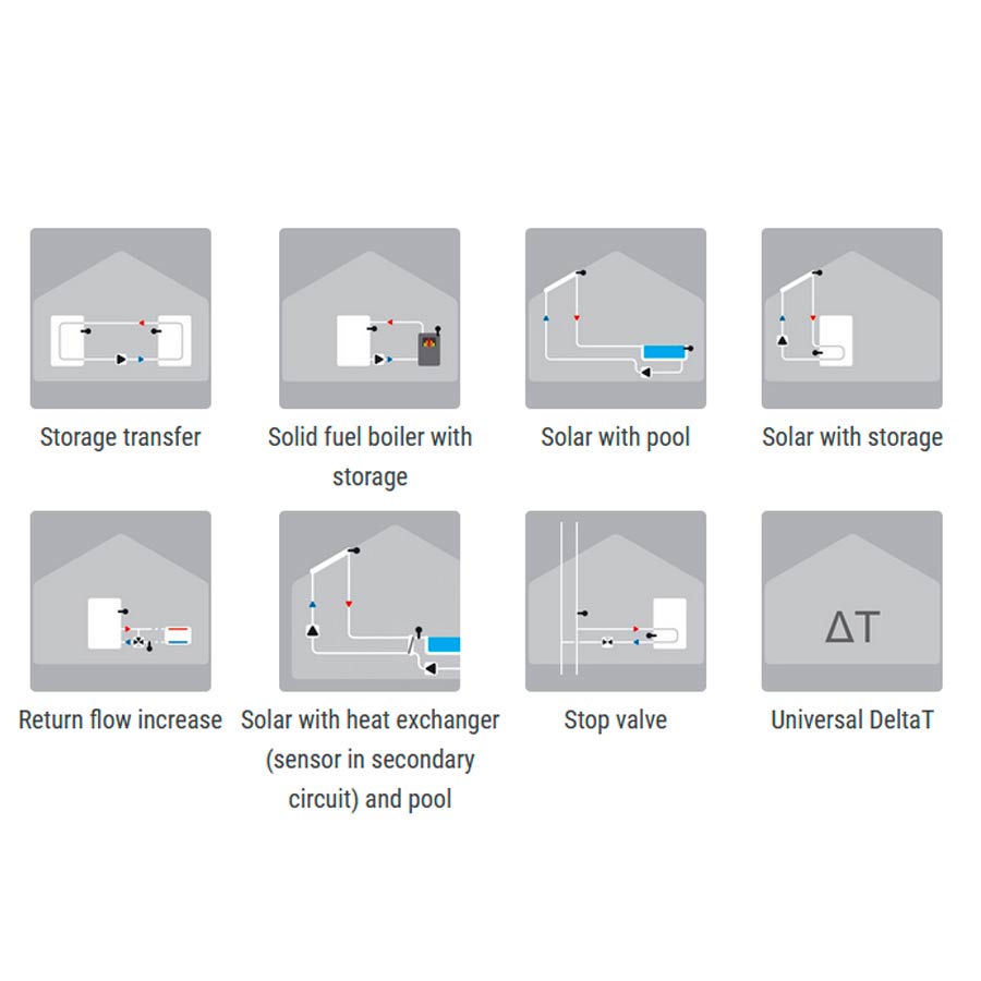 Älykäs lämpötilaerosäädin vesikiertotakan tai aurinkokeräimien pumpun ohjaukseen. Helppo käyttää suomenkielisen käyttöliittymän ansiosta!
