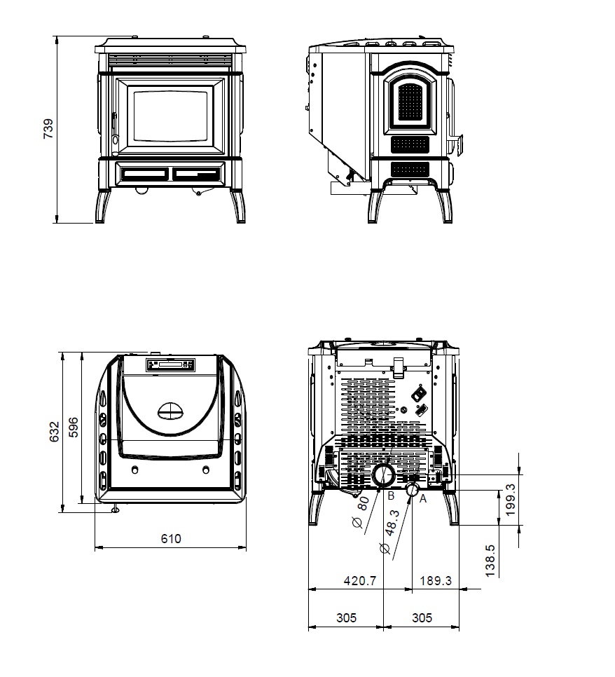 Helppokäyttöinen näyttöpaneeli ilmoittaa nykyisen takan mittaaman huonelämpötilan, ja lämpötilaa voidaan säätää helposti + ja – näppäimillä. Tehoalueella 1-5 voit säätää takan tuottamaa lämpötehoa helposti + ja – näppäimillä. Yksinkertainen ja helppo valikkorakenne. Rullaavat tekstit valikoissa. Takassa vakiona huonetermostaattianturi lyhyellä johdolla (pituus jatkettavissa) Tuotteen vakio-ominaisuksiin kuuluu Glass Cleaning system, jossa ilmavirtaukset on suunniteltu pitämään takan tulipesän lasin mahdollisimman kauan puhtaana. Nopeussäätyvä savukaasumoottori mittaa jatkuvasti nopeutta. Pellettisäiliössä mekaaninen turvatermostaatti, joka pakkokatkaisee pelletinsyötön mikäli säiliön lämpötila nousee liian korkealle. Alipaineanturi tarkkailee hormin vetoa mittaamalla takan läpi virtaavaa ilmaa. Viikko-ohjelmoinnilla mahdollisuus asettaa takka syttymään ja sammumaan haluttuina aikoina. Automaattinen sytytys sytytysvastuksen avulla, paina takka käyntiin napista tai aseta haluttu huonelämpötila, jota takka noudattaa syttymällä ja sammumalla tarpeen mukaan.