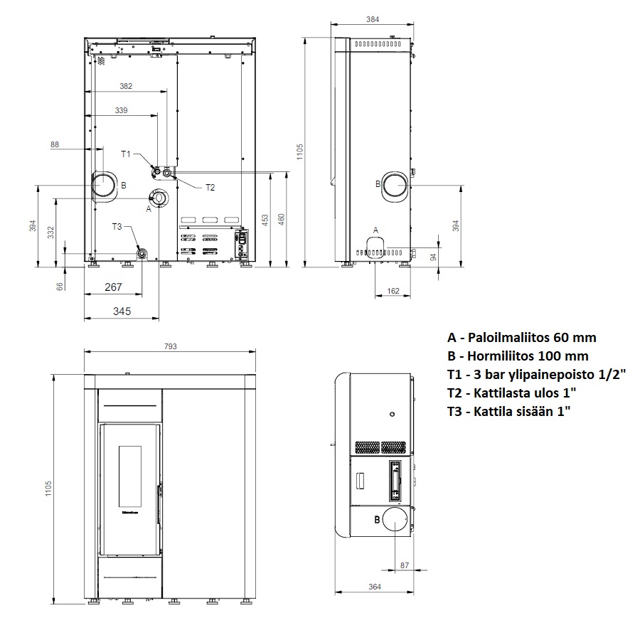 Mitat (L x K x S): 793 x 1105 x 384 mm